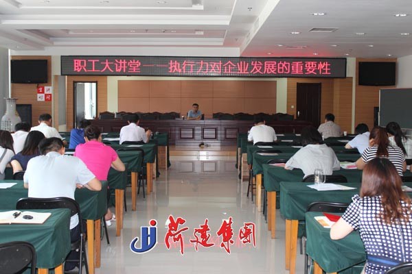 講堂中,石主席引用生動(dòng)而又扣人心弦的小故事,告訴我們執(zhí)行力在企業(yè)中的作用。隨后,石主席從什么是執(zhí)行,執(zhí)行力在企業(yè)中的作用,企業(yè)執(zhí)行力不高的主要因素以及怎樣提高執(zhí)行力等方面進(jìn)行了詳細(xì)講解。