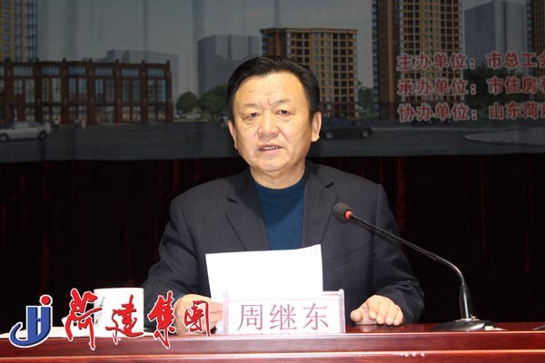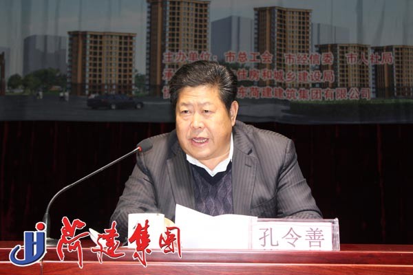 菏澤市住建局黨委副書記、市建設(shè)工會主任孔令善在開幕式上講話