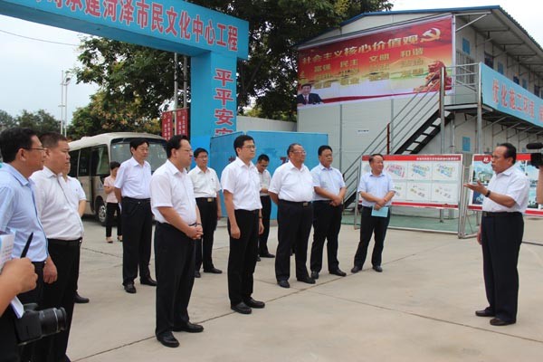 8月31日,市委書記孫愛軍一行到集團公司承建的菏澤市市民文化中心調(diào)研。市委常委、常務副市長閆劍波,市委常委、秘書長任仲義,副市長王忠想及相關(guān)部門主要負責人陪同調(diào)研。市人大常委會副主任、市總工會主席丁志剛參加調(diào)研并做工作匯報,集團總經(jīng)理苗林、總工程師邵九憲等參加調(diào)研活動。