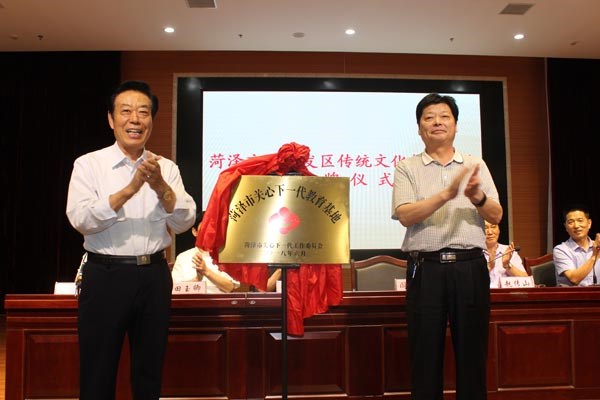 6月16日,集團公司被市關工委授予“菏澤市關心下一代教育基地”稱號,被開發(fā)區(qū)關工委授予“開發(fā)區(qū)傳統(tǒng)文化教育基地”稱號,并舉行揭牌儀式。菏澤市人大常委會原第一副主任、市關工委主任閻世海,市關工委副主任趙傳山,開發(fā)區(qū)關工委主任李守玉,集團黨委書記、董事長李信強,總經理苗林、菏澤市朗誦藝術協(xié)會會長周忠良等領導出席會議。各單位主要負責人及機關全體同志參加會議。