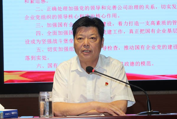 圍繞新形勢(shì)下國(guó)有企業(yè)的黨建工作,李信強(qiáng)從六個(gè)方面做了詳細(xì)講解。一是要統(tǒng)一思想,提高認(rèn)識(shí),切實(shí)增強(qiáng)國(guó)有企業(yè)加強(qiáng)黨的建設(shè)的責(zé)任感和緊迫感。加強(qiáng)黨的建設(shè),是做強(qiáng)做優(yōu)做大國(guó)有企業(yè)的根本保證,是確保國(guó)有企業(yè)改革正確方向的必然要求,是提高國(guó)有企業(yè)黨組織創(chuàng)造力、凝聚力和戰(zhàn)斗力的迫切需要。 二是要正確處理加強(qiáng)黨的領(lǐng)導(dǎo)和完善公司治理的關(guān)系,切實(shí)發(fā)揮好國(guó)有企業(yè)黨組織的領(lǐng)導(dǎo)核心和政治核心作用,準(zhǔn)確把握國(guó)有企業(yè)黨組織的功能定位,進(jìn)一步完善“雙向進(jìn)入、交叉任職”的領(lǐng)導(dǎo)體制,正確處理黨組織與其他治理主體關(guān)系。三是要加強(qiáng)國(guó)有企業(yè)領(lǐng)導(dǎo)班子建設(shè),著力打造一支高素質(zhì)的管理隊(duì)伍。堅(jiān)持黨管干部的原則,堅(jiān)持德才兼?zhèn)涞臉?biāo)準(zhǔn),選準(zhǔn)人,用好人。不斷改進(jìn)企業(yè)領(lǐng)導(dǎo)人員選拔任用機(jī)制,加大競(jìng)爭(zhēng)性選人用人力度,促進(jìn)優(yōu)秀人才脫穎而出。健全企業(yè)領(lǐng)導(dǎo)人員培育機(jī)制,加強(qiáng)素質(zhì)培養(yǎng)和能力建設(shè)。四是要全面加強(qiáng)國(guó)有企業(yè)基層黨建工作,真正把國(guó)有企業(yè)基層黨組織建設(shè)成為堅(jiān)強(qiáng)戰(zhàn)斗堡壘,健全完善黨的組織體系,緊扣企業(yè)生產(chǎn)經(jīng)營(yíng)開展黨建工作,重視加強(qiáng)思想政治工作,堅(jiān)持從嚴(yán)治黨要求,著力推進(jìn)國(guó)有企業(yè)黨風(fēng)廉政建設(shè)。五是要切實(shí)加強(qiáng)組織領(lǐng)導(dǎo)和督導(dǎo)檢查,推動(dòng)國(guó)有企業(yè)黨的建設(shè)各項(xiàng)工作落到實(shí)處,要強(qiáng)化責(zé)任擔(dān)當(dāng),強(qiáng)化推進(jìn)落實(shí),強(qiáng)化基礎(chǔ)工作,強(qiáng)化督查考核,推動(dòng)集團(tuán)的黨建工作全面加強(qiáng)、全面進(jìn)步。六是國(guó)有企業(yè)黨員干部要做新時(shí)代講政德的模范,要堅(jiān)定信念、為民服務(wù)、敢于擔(dān)當(dāng)、勤政務(wù)實(shí)、甘于奉獻(xiàn)。
