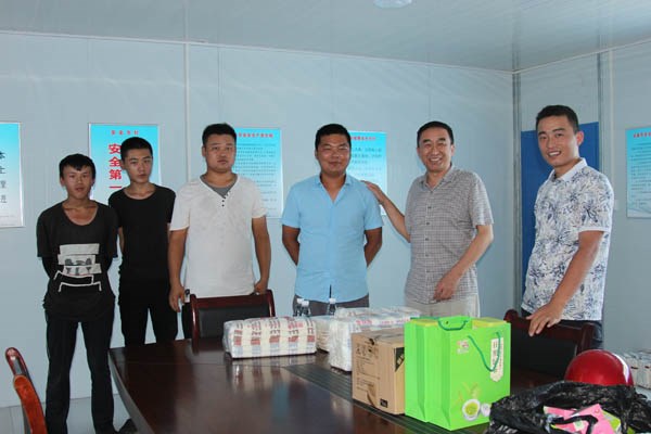 隨著7月份氣溫逐漸升高,連續(xù)多日氣象部門發(fā)出高溫預警,給集團各工地的施工建設帶來嚴峻的考驗,而我們的一線職工依然堅守在各自的崗位上。7月18日—20日,集團工會組織開展了暑期“送清涼”活動。在集團公司黨委書記、董事長李信強,總經(jīng)理苗林等其他領導班子成員的帶領下,工會將毛巾、香皂、清涼油、綠豆、茶葉等防暑降溫用品,送到菏澤市縣區(qū)集團33個施工現(xiàn)場和5個生產(chǎn)作業(yè)單位進行慰問,為高溫奮戰(zhàn)在一線的職工送去一片清涼,讓大家感受到集團黨委和工會的關心和溫暖。