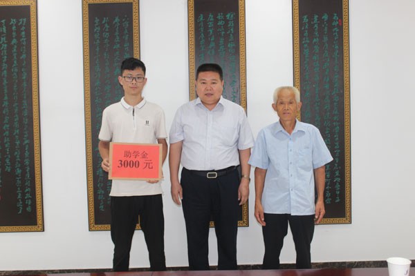9月1日上午,成武縣孫寺鎮(zhèn)盧莊行政村黨支部書記和貧困戶宋茂新及兒子宋永生,將一面“無私奉獻(xiàn)資助學(xué)子”的錦旗送到集團(tuán)公司總經(jīng)理苗林手中,并表示衷心的感謝。
