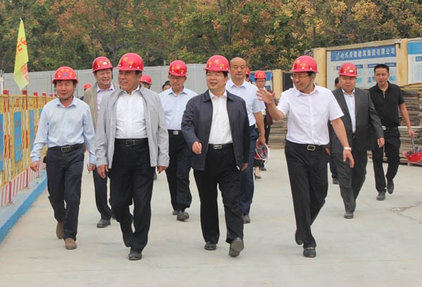 集團(tuán)總經(jīng)理苗林(右二)向陳平市長匯報項(xiàng)目建設(shè)情況