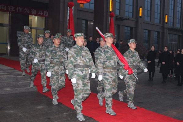 揭牌儀式前舉行了升國(guó)旗儀式。菏建國(guó)投領(lǐng)導(dǎo)、有限公司機(jī)關(guān)全體同志、各單位領(lǐng)導(dǎo)班子及臨設(shè)機(jī)構(gòu)全體人員參加揭牌儀式。