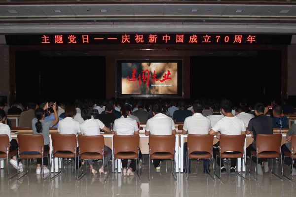 在高亢嘹亮而激情飽滿的國(guó)歌演唱后,全體黨員同志觀看了愛(ài)國(guó)影片《建國(guó)大業(yè)》。影片以重慶談判到建國(guó)前夕為背景,正面再現(xiàn)了共和國(guó)多黨合作和政治協(xié)商制度從誕生到確立這一重大歷史事件,贊頌了中國(guó)共產(chǎn)黨先驅(qū)們用青春、激情和奮斗,救亡圖存、力圖改寫歷史的偉大壯舉。黨員同志們認(rèn)真觀看,深刻感悟,備受鼓舞。