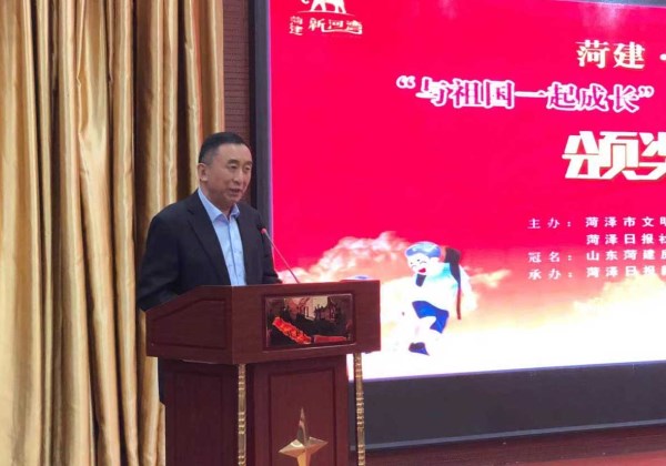 ![]() 菏建國投黨委副書記任永信在頒獎(jiǎng)典禮上致辭 |