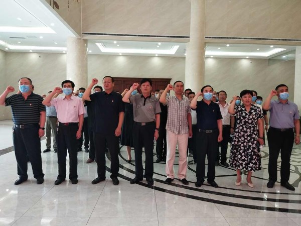 ![]() 全體參觀人員高舉右拳,重溫入黨誓詞 |