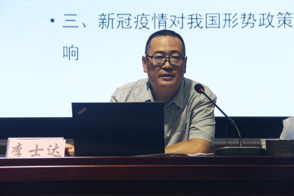 李士達從新冠疫情是一場大考、新冠疫情對世界形勢的影響、新冠疫情對我國形勢政策的影響三個方面,全面而又系統(tǒng)地講述了新冠疫情帶來的沖擊,以及我國在應(yīng)對新冠疫情時作出的巨大努力。