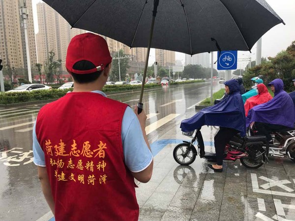 菏建國投志愿者冒雨開展文明交通勸導(dǎo)活動