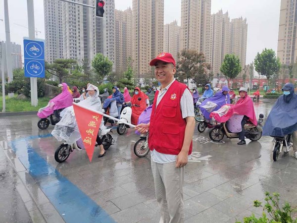 ![]() 菏建國投黨委副書記任永信帶領(lǐng)公司志愿者冒雨開展文明交通勸導(dǎo)活動 |