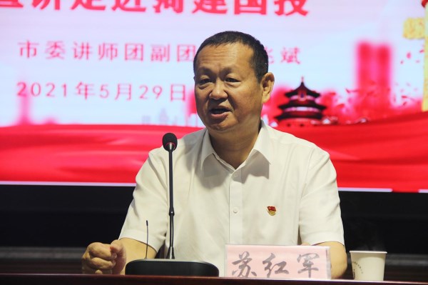 按照市委統(tǒng)一部署,5月29日,菏澤市黨史學(xué)習(xí)教育“專(zhuān)家學(xué)者進(jìn)基地”巡回宣講走進(jìn)菏建國(guó)投公司。市委講師團(tuán)副團(tuán)長(zhǎng)徐兆斌以“開(kāi)展黨史學(xué)習(xí)教育,汲取強(qiáng)大奮進(jìn)力量”為主題,講了一堂生動(dòng)而又深刻的中共黨史學(xué)習(xí)教育專(zhuān)題黨課。菏建國(guó)投黨委副書(shū)記、總經(jīng)理蘇紅軍主持會(huì)議并作重要講話。菏建國(guó)投領(lǐng)導(dǎo)班子,國(guó)投機(jī)關(guān)全體工作人員,各權(quán)屬單位領(lǐng)導(dǎo)班子全體人員,三級(jí)單位主要負(fù)責(zé)人參加會(huì)議。