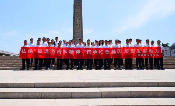 ![]() 置業(yè)公司黨員同志在鐵道游擊隊(duì)紀(jì)念碑下的合影 |
