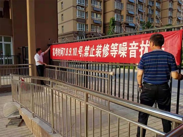 為愛(ài)心服務(wù)莘莘學(xué)子,給廣大考生營(yíng)造安靜舒適的休息備考環(huán)境,高考期間,恒良物業(yè)公司各物管小區(qū)積極張貼懸掛“禁止噪音”等溫馨提示、條幅,并在業(yè)主服務(wù)平臺(tái)轉(zhuǎn)發(fā)提示信息,為考生配備高考應(yīng)急車(chē)輛,廣泛宣傳、愛(ài)心助力,為廣大考生送上誠(chéng)摯祝福。