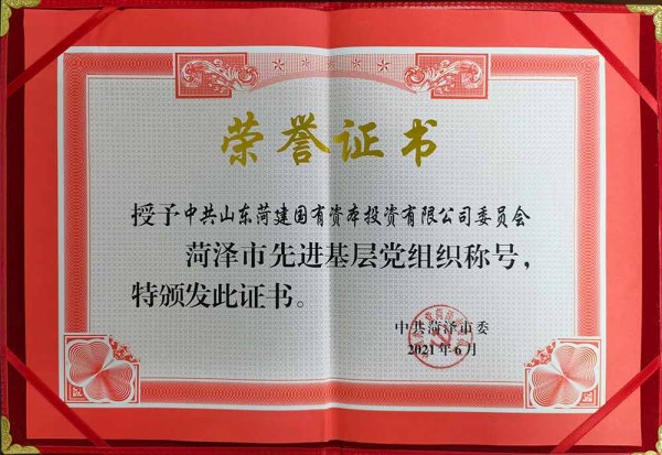 菏建國投黨委獲評“菏澤市先進基層黨組織”榮譽稱號
