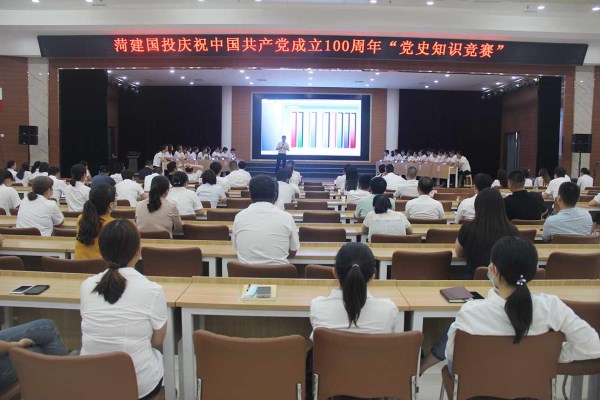 為慶祝中國共產(chǎn)黨成立100周年,深入開展黨史學(xué)習(xí)教育,團結(jié)帶領(lǐng)廣大黨員干部職工永遠跟黨走、奮起新征程,7月1日下午,菏建國投黨群工作部聯(lián)合工會開展慶祝中國共產(chǎn)黨成立100周年“黨史知識競賽”活動。菏建國投領(lǐng)導(dǎo)班子及各權(quán)屬公司觀賽人員共180余人參加活動。