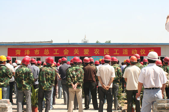 慰問(wèn)儀式上,市總工會(huì)常務(wù)副主席侯永信代表市總工會(huì)講話,對(duì)農(nóng)民工為城鄉(xiāng)建設(shè)所做出的突出貢獻(xiàn)給予充分肯定和高度贊揚(yáng),表示將繼續(xù)關(guān)心廣大農(nóng)民工的生產(chǎn)生活,辦實(shí)事、辦好事,切實(shí)維護(hù)好農(nóng)民工的合法權(quán)益。張廣周總經(jīng)理在講話中對(duì)市總工會(huì)的關(guān)心和厚愛(ài)表示感謝,要求華英嘉園工地一如既往改善農(nóng)民工的工作、生活環(huán)境,千方百計(jì)保障農(nóng)民工的各方權(quán)益,團(tuán)結(jié)一致,互誠(chéng)互信,把華英嘉園建設(shè)成優(yōu)質(zhì)工程、用戶(hù)滿意工程。農(nóng)民工代表在儀式上也做了表態(tài)發(fā)言。