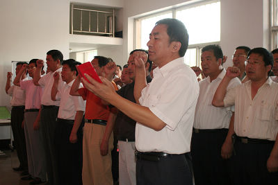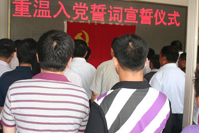 為迎接“七一”建黨88周年,7月1日上午8時,集團在辦公室樓一樓大廳舉行重溫入黨誓詞宣誓儀 式。集團紀委書記兼黨辦主任任永信同志主持儀式,集團領導張廣周、郭武、李安斌、王振國、李信強、邵九憲、李永亮,以及機關全體黨員和集團公司08年度預備黨員參加了宣誓活動。