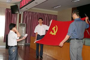 6月30日上午,集團在六樓會議室舉行慶祝建黨89周年重溫入黨誓詞宣誓活動。在神圣而又莊嚴(yán)的儀式上,黨委副書記郭武代表集團黨委在講話中指出,入黨宣誓是神圣的、非常有意義的活動,體現(xiàn)了入黨的莊重性和嚴(yán)肅性。他希望全體黨員要時刻牢記黨的誓言,積極履行黨員義務(wù),嚴(yán)格要求自己,做一名合格的共產(chǎn)黨員,在各自崗位上扎實工作、無私奉獻,積極為企業(yè)的又好又快做出應(yīng)有貢獻。隨后,在黨委辦公室主任韓明的領(lǐng)讀下,部分單位黨支部書記、機關(guān)黨員代表和09年度預(yù)備黨員共40余人,面對鮮紅黨旗,鄭重舉起右手,進行了入黨宣誓,重溫入黨誓詞。