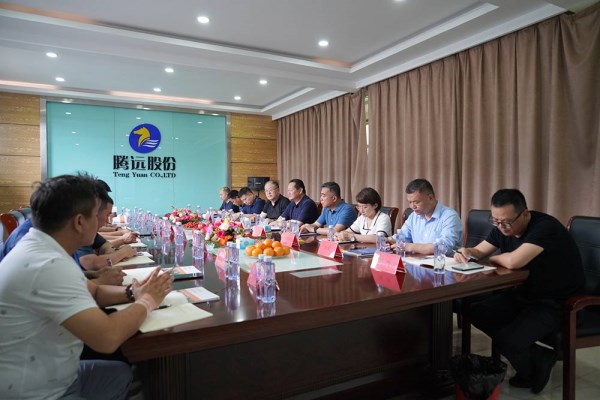 隨后考察團(tuán)一行與騰遠(yuǎn)股份進(jìn)行了座談,騰遠(yuǎn)股份總經(jīng)理陳俊宗介紹了公司的發(fā)展歷程和現(xiàn)狀,公司從2011年開始發(fā)展,注冊資金18166萬元,目前擁有巴頓菲兒德等生產(chǎn)線120余條和多項專利,管道年產(chǎn)能30萬噸、管件年產(chǎn)能6000噸,擁有13大生產(chǎn)基地,是集研發(fā)、生產(chǎn)、銷售為一體的高新技術(shù)企業(yè)。蘇紅軍對其發(fā)展成果給予了充分肯定。雙方就項目合作相關(guān)內(nèi)容發(fā)表了各自意見和建議。