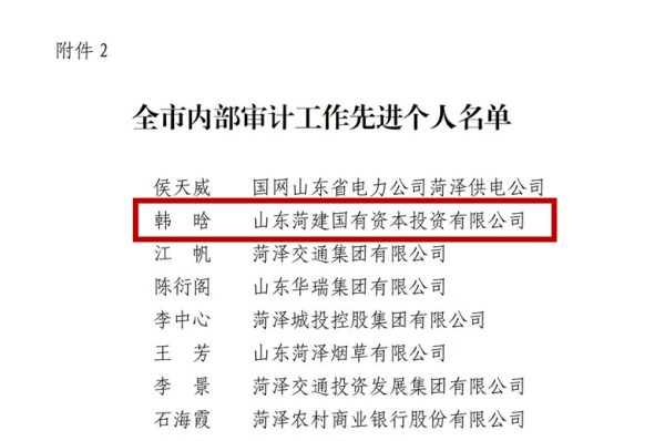菏建國投獲評“全市內(nèi)部審計工作先進單位”