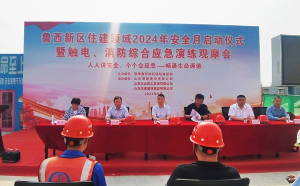 為深入學(xué)習(xí)習(xí)近平總書記關(guān)于安全生產(chǎn)工作重要指示精神,強(qiáng)化安全生產(chǎn)紅線意識(shí)和底線思維,實(shí)現(xiàn)安全生產(chǎn)形勢(shì)持續(xù)穩(wěn)定向好,6月4日,魯西新區(qū)住建領(lǐng)域在菏建東方樾府項(xiàng)目現(xiàn)場(chǎng)舉行2024年安全月啟動(dòng)儀式暨觸電、消防綜合應(yīng)急演練觀摩會(huì)活動(dòng)。魯西新區(qū)規(guī)劃建設(shè)局副局長吳合生,菏建國投黨委委員、第一副總經(jīng)理、菏建集團(tuán)黨委書記、董事長徐淑鑫,魯西新區(qū)規(guī)劃建設(shè)局業(yè)務(wù)科室負(fù)責(zé)同志,部分在建工地建設(shè)單位負(fù)責(zé)人、施工單位項(xiàng)目經(jīng)理、監(jiān)理單位總監(jiān)等共計(jì)100余人參加活動(dòng)。