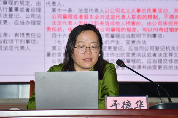 ![]() 公司邀請(qǐng)上海市建緯(濟(jì)南)律師事務(wù)所高級(jí)合伙人、律師于德華以“新《公司法》修訂主要亮點(diǎn)”為主題進(jìn)行授課 |