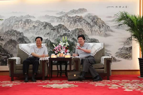 圖二:李信強總經(jīng)理和臨沂天元集團董事長、黨委書記張桂玉進(jìn)行座談交流