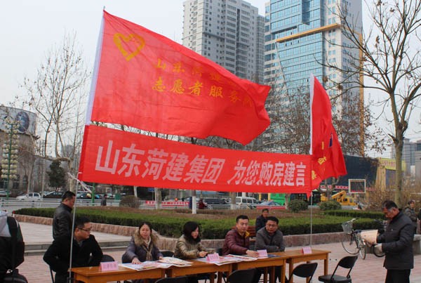 此次活動,集團以“山東菏建集團為您購房建言”為主要內(nèi)容,共展開涉及“購房咨詢、裝飾咨詢、房屋質(zhì)量咨詢、法律咨詢”等多個方面知識宣傳。三月的花都還是冷風(fēng)刺骨,集團志愿者以專業(yè)的態(tài)度積極向過往的行人講解房屋相關(guān)知識,盡心盡力做好服務(wù)闡述雷鋒時代精神,用實際行動展示出菏建人良好的社會形象。