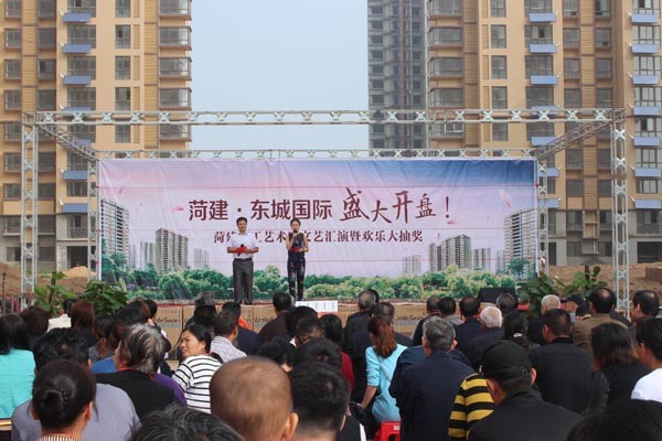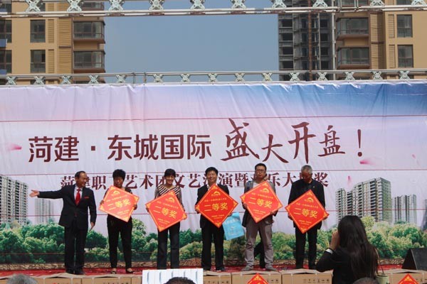 菏建·東城國(guó)際開盤當(dāng)天,意向客戶不僅欣賞到了一系列的文藝演出,還憑借手中的抽獎(jiǎng)卡進(jìn)行了抽獎(jiǎng)。在演出的表演嘉賓當(dāng)中不僅有專業(yè)的演員,其中還不乏集團(tuán)職工藝術(shù)團(tuán)的文藝骨干份子。抽獎(jiǎng)環(huán)節(jié)氣氛火熱,其中一等獎(jiǎng)價(jià)值5000余元的液晶電視一臺(tái);二等獎(jiǎng)價(jià)值2800余元的IPADmini 5部;三等獎(jiǎng)價(jià)值1288余元的全自動(dòng)洗衣機(jī)10臺(tái);紀(jì)念獎(jiǎng)50名,獎(jiǎng)價(jià)值300元的電壓力鍋一臺(tái)。另外,還有回饋業(yè)主的價(jià)值299元的陽(yáng)光普照獎(jiǎng)600名。當(dāng)天共推出360余套房源,引來(lái)500多位購(gòu)房者瘋搶,最終成交260套。