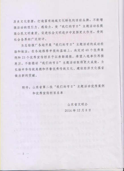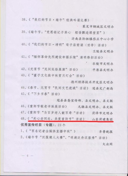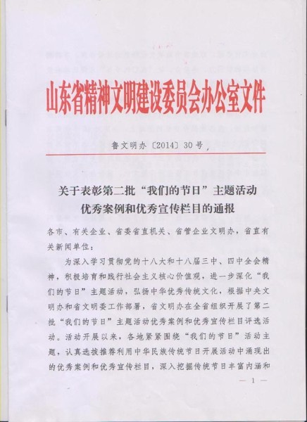 近日,在全省第二批“我們的節(jié)日”主題活動(dòng)優(yōu)秀案例和優(yōu)秀宣傳欄目評(píng)選活動(dòng)中,集團(tuán)《“關(guān)心老同志,共度重陽(yáng)節(jié)”活動(dòng)》案例被山東省精神文明建設(shè)委員會(huì)辦公室被評(píng)為優(yōu)秀案例。