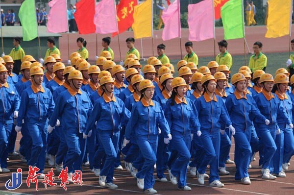 入場式上,集團組成65人方隊,他們身著統(tǒng)一鮮明的服裝,頭戴集團標識安全帽,踏著雄壯的《運動員進行曲》,高呼“團結(jié)拼搏、求真務(wù)實,開拓進取、爭創(chuàng)一流”的口號,精神抖擻,整齊劃一,盡情展現(xiàn)了菏建人的魅力,展示出菏建人昂揚向上的精神風(fēng)貌,成為開幕式上一道絢麗的風(fēng)景線,贏得了主席臺上省、市領(lǐng)導(dǎo)和現(xiàn)場觀眾的一致好評。